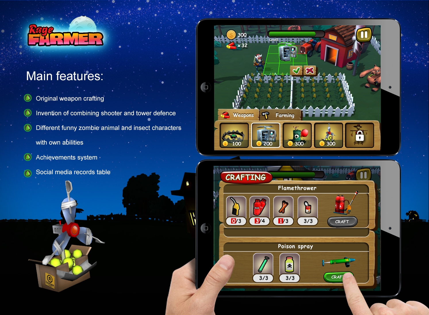 Rage Farmer defends his farm from funny animal and insect zombies, which shove from all sides. They want to destroy his farm. But farmer will stand till the end!