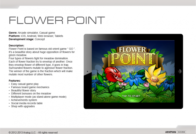 We provide 2D Game Outsourcing services to third parties companies. Our 2D art Team can cover any field including various forms of conceptualization, asset planning, illustration and more.